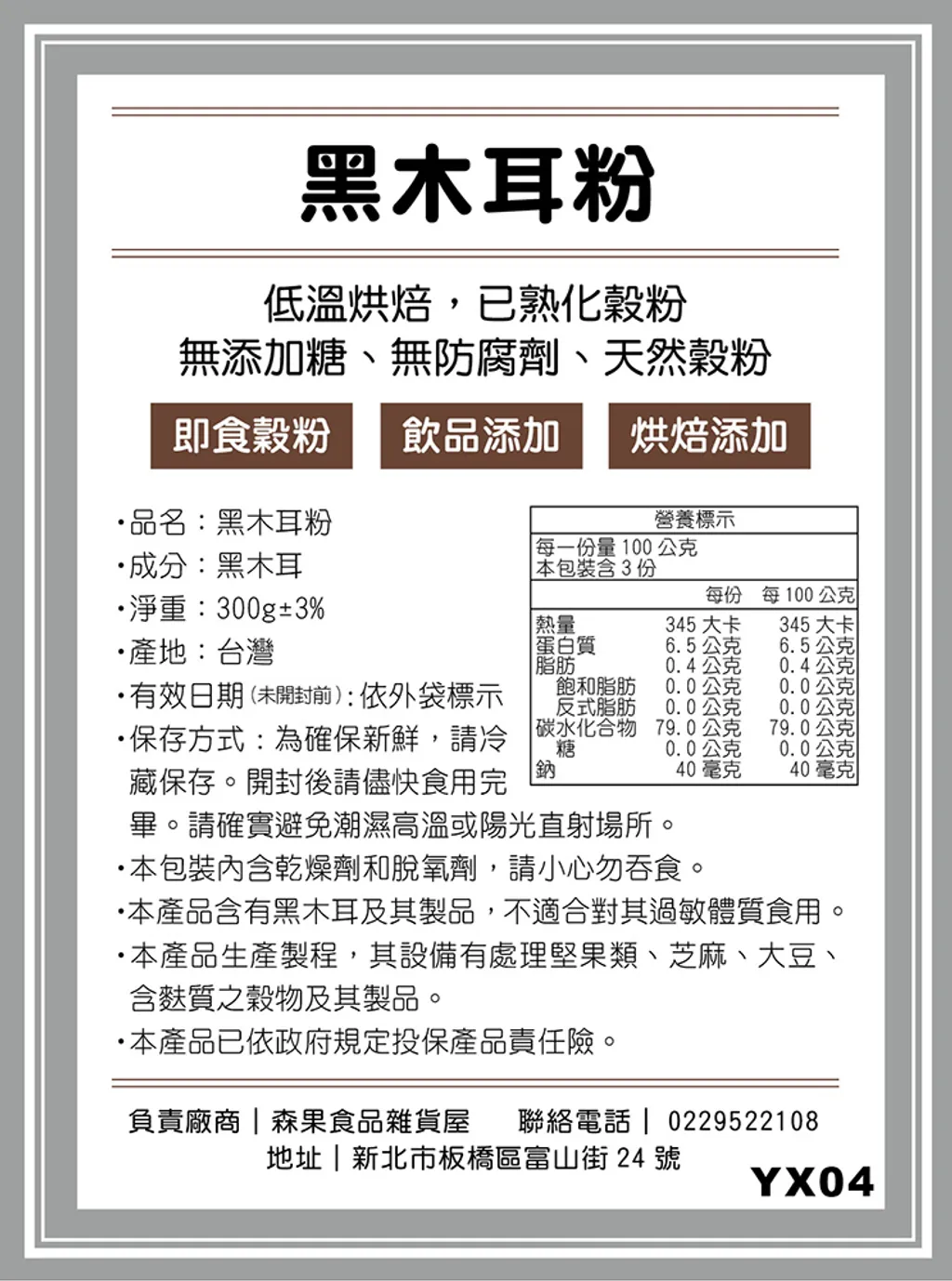 ● 本產品含有黑木耳及其製品,不適合對其過敏體質食用。